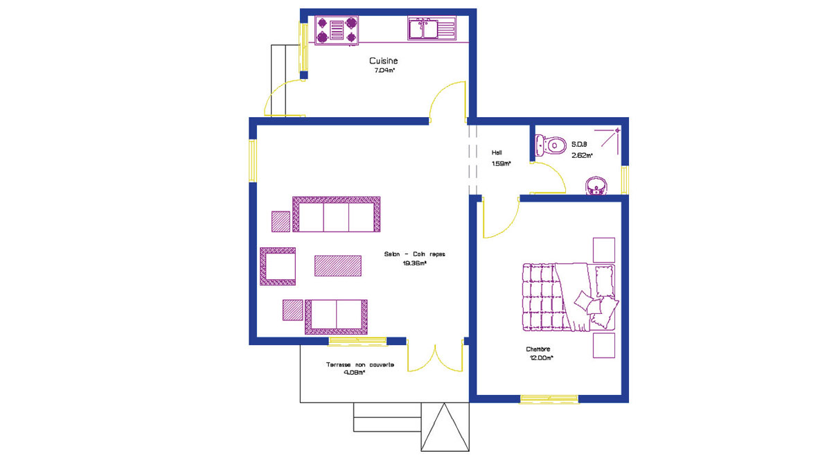 LOGEMENT TYPE I ( F2 avec cuisine interieure)